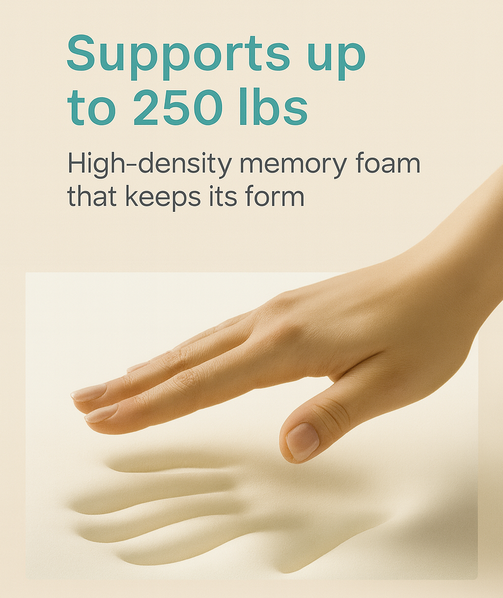 High-density memory foam adapts to your body shape and distributes weight across your thighs and hips.